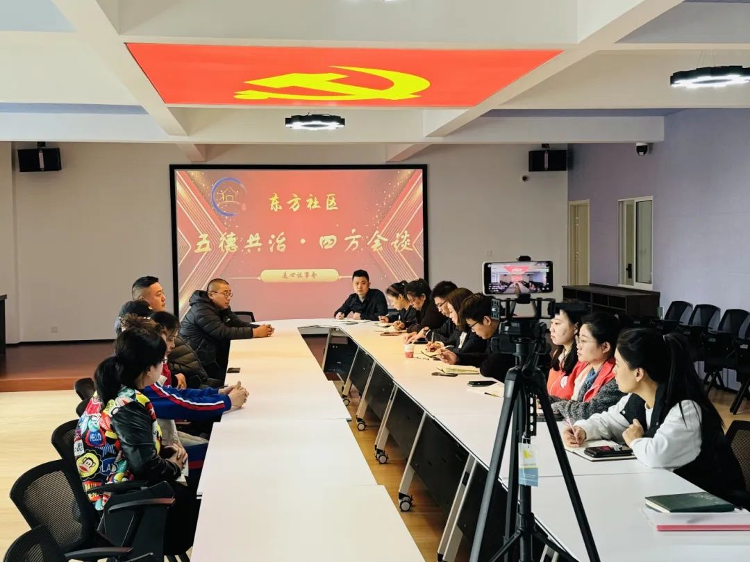 东方社区整合多方力量,汇聚管理服务合力。针对日常社区治理中遇到的问题,如“电动自行车堵塞消防通道应如何解决”等,社区定期举行“五德共治·四方会谈”。会议邀请社区网格内的党员、志愿者、楼长、文艺骨干等居民“榜样”畅所欲言、建言献策。塾香园7号楼楼长王倩倩表示,楼长就是居民和社区之间的纽带,要继续打造诚信楼宇,不断加强社区居民群众的获得感与幸福感,发动更多居民参与到社区基层治理中来。