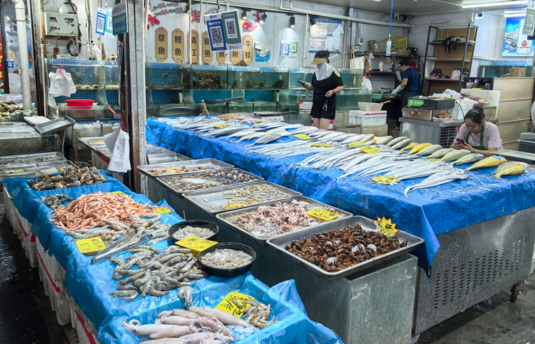 市场中的海鲜摊位