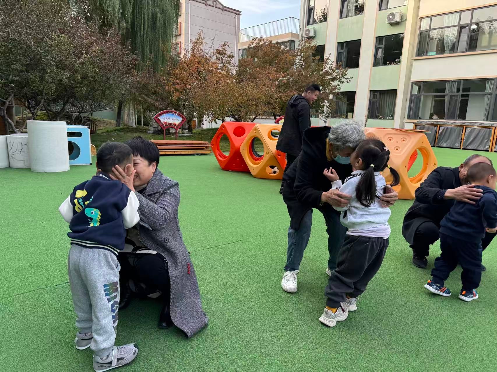 活动中,孩子们小手牵大手,引领祖辈走过温馨红毯,亲密合影。镜头定格灿烂笑容,更记录下血脉亲情的温暖瞬间。游戏环节,祖孙在欢快音乐中互动游戏,肩膀相碰、拥抱问候,老小孩与小小孩笑声交融,天伦之乐满溢校园。正值园内秋果丰收,孩子们采摘石榴、苹果等果实,与祖辈共享“水果下午茶”。清甜果香中,孝亲美德悄然浸润童心。