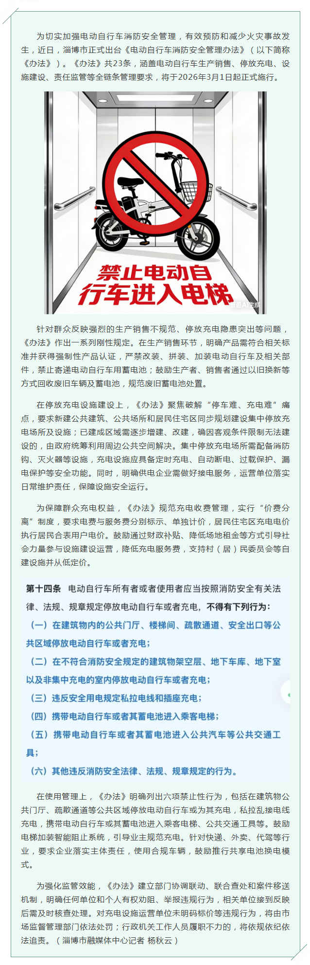 淄博出台《电动自行车消防安全管理办法》,来看哪些行为将被禁止-九游会国际