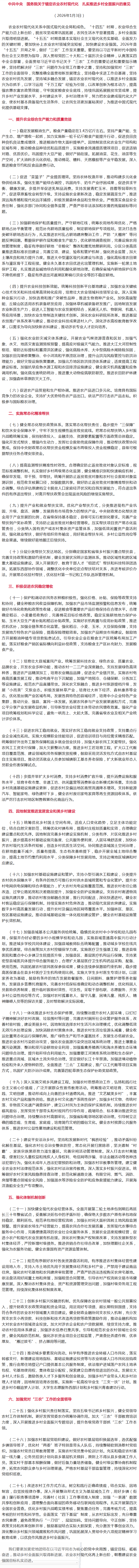 2026年中央一号文件,全文来了!-九游会国际