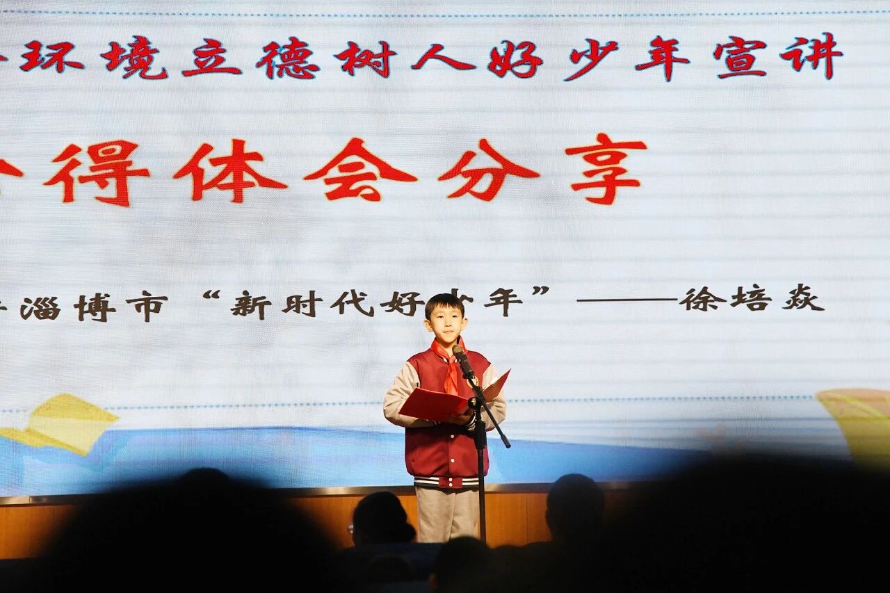 活动在童声合唱中拉开帷幕。随后,市级“新时代好少年”、全环境立德树人好少年宣讲团成员徐培焱现场以同龄人的视角讲述成长故事。