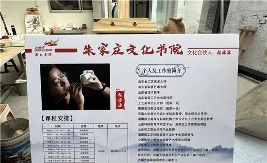 在朱家庄文化书院的张源源工作室里,负责人张源源正在手把手教学员拉坯塑形,“做杯子,心要静,手要稳,泥坯才能‘听话’。”指尖翻飞间,学员手里的陶泥已逐渐成型为一只古朴的“主人杯”。作为首批签约入驻的艺术大师之一,张源源每周六开课,学员从孩童到老人络绎不绝。