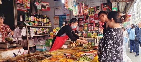 “少点,吃多少,点多少!”“六块二,给六块!”博山酱菜店的老板刘乐福,戴着老花镜,笑呵呵地把纸包递给游客。在八大局扎根二十多年,他卖酱菜总爱“多给两毛”。“一毛两毛的,赚个口碑,攒个回头客!”这份带着泥土气的厚道,让他的酱菜店凭着正宗口味和诚信经营,在八大局成为 “流量担当”,刘乐福也在网络上被亲切地称为“咸菜超人”。
