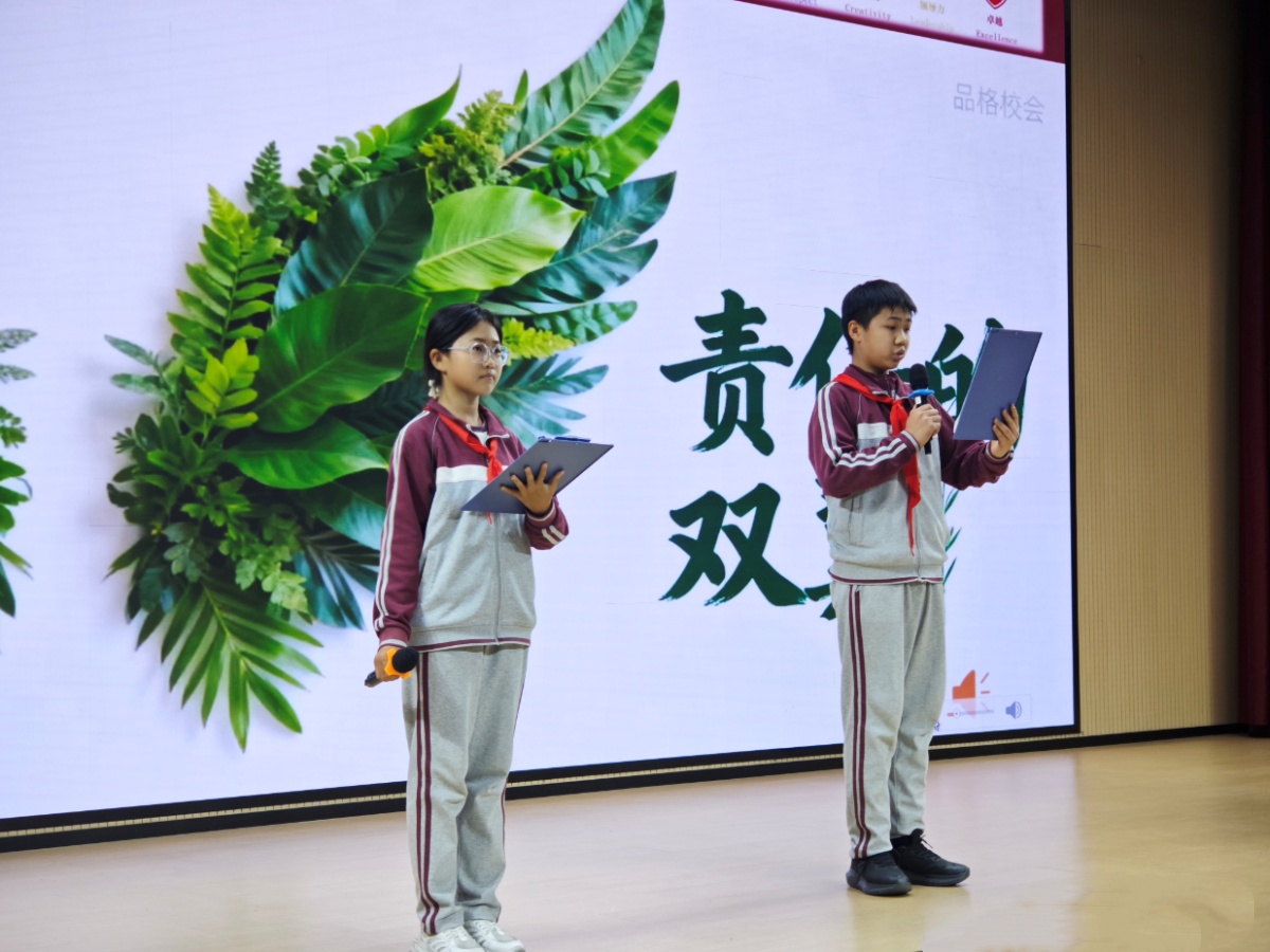 校会开场,初二二班学子以“责任的双翼”为主题带来深情朗诵。响亮的声音回荡在报告厅内,同学们认真聆听,将鼓励与引导化作行动指南。