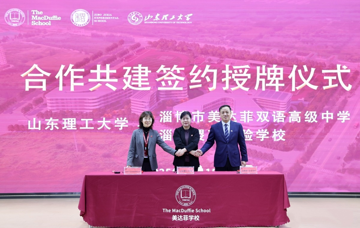 12月15日,山东理工大学(以下简称“理工大”)与淄博稷下实验学校、淄博美达菲双语高级中学正式签署《合作框架协议》,并同步启动“科技副校长”“文化副校长”聘任及“合作共建单位”授牌仪式。这场跨越高等教育与基础教育的合作,以“资源共享、优势互补、协同发展”为核心,搭建起贯通学段的育人桥梁,为区域教育高质量发展注入新的活力。