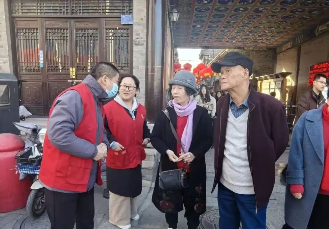 为让广大游客玩得安心、舒心、放心,淄博市周村区志愿服务联合会组织广大志愿者,放弃与家人的团聚 ,全程值守在古商城各个关键点位。他们身着统一志愿服装,穿梭在人流之中,秩序维护、游览引导、咨询解答、环境保洁、应急帮扶,用热情、耐心与细致,守护着景区的有序运转。
