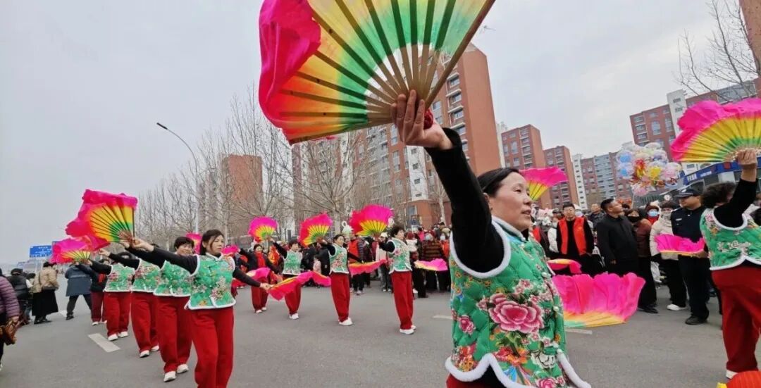 现场鼓乐齐奏、热闹非凡,寒风凛凛也难挡热情如织的人潮。表演队伍一路走一路舞,一次次将展演气氛推向高潮,沿路观众和演员们热情互动,纷纷举起手机录视频、发朋友圈,将这美好喜庆、特色地道的文化大餐分享给亲朋好友,共同感受民风民俗、特色非遗的文化魅力。