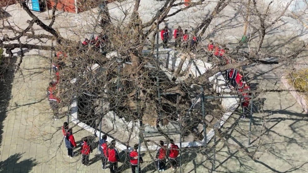 学生韩佳薇仰头望着虬龙般的枝干,轻声说:“它看着那么老,可一到春天又充满生机。就像一位沉默的老师,教会我们什么叫坚韧。”