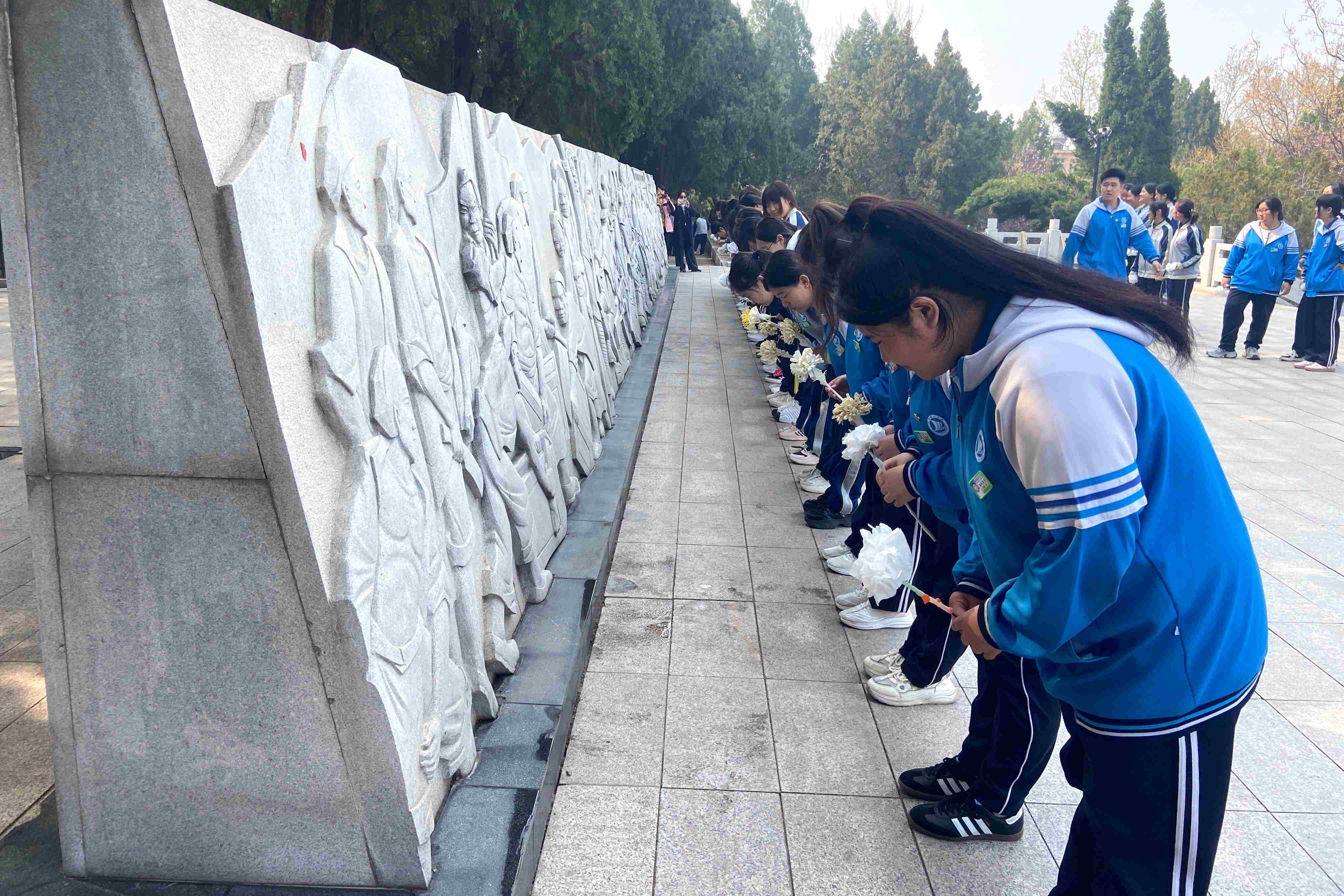 上午9时,烈士陵园松柏苍翠,庄严肃穆。全体同学手持花束,整齐列队,于烈士纪念碑前高唱国歌。随后,大家集体垂首默哀,深切缅怀为民族独立和人民解放英勇献身的革命先烈。