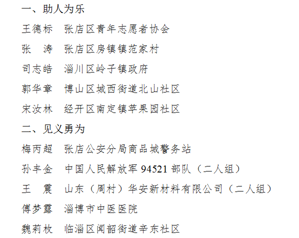 为深化身边好人宣传选树活动,坚持弘扬凡人善举,引导全社会向典型学精神、学品质、学方法,培育社会文明新风,经各级审核推选、媒体公示,现将2025年第一批入选“淄博好人榜”共24人(组)名单发布如下: