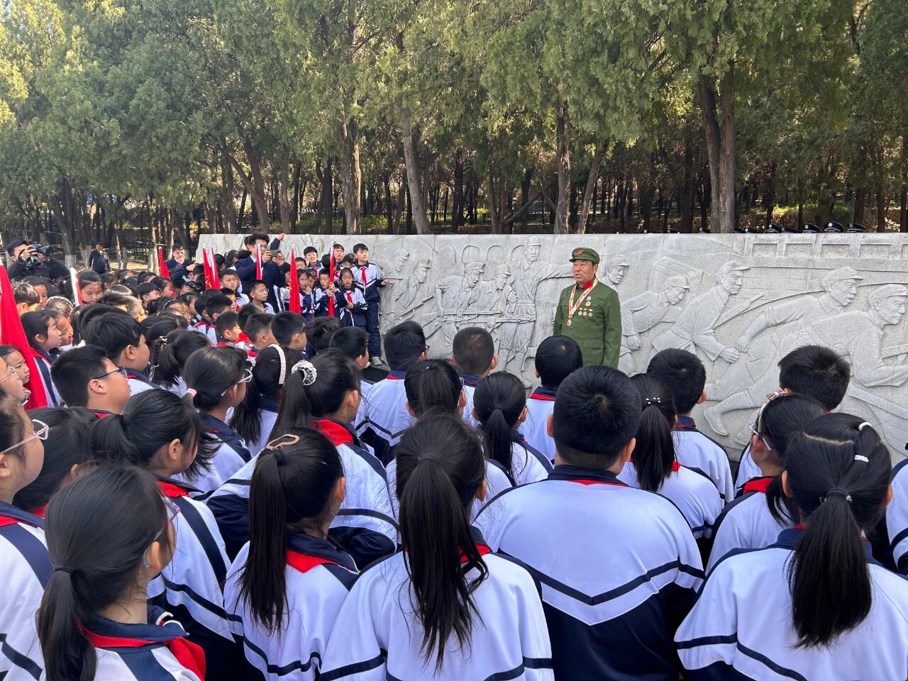 实施红色基因赓续行动。用好淄川烈士陵园、马鞍山抗战遗址等爱国主义教育基地,淄川区实验小学、雁阳小学等学校组织2000余名学生到赵瓦村国防教育基地、裕民天成国防教育基地等开展主题研学活动8场。依托淄川烈士陵园、马鞍山抗战遗址等爱国主义教育基地,广泛开展“清明祭英烈”等爱国主义教育活动,淄博市“传承红色基因·清明祭英烈”2025年“我们的节日·清明节”主题文化活动在淄川区举行,党政干部、师生及志愿者等400余人参与,成为凝聚家国情怀、培育文明素养、激发奋进力量的生动课堂。