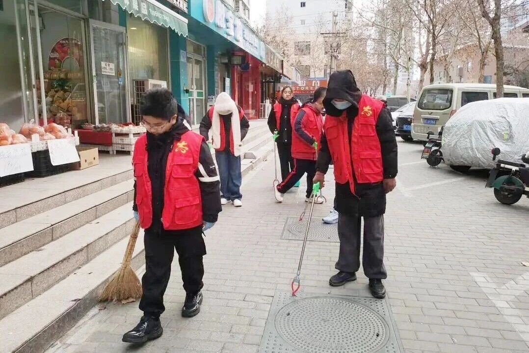 成立仪式结束后,青少年志愿者们以“少年齐出力,街巷展新颜”为主题,迅速投入到首次志愿服务活动中。在社区工作人员的引导下,他们分组行动,手持扫帚、垃圾夹等工具,对沿街商铺门前的道路进行了全面清理。