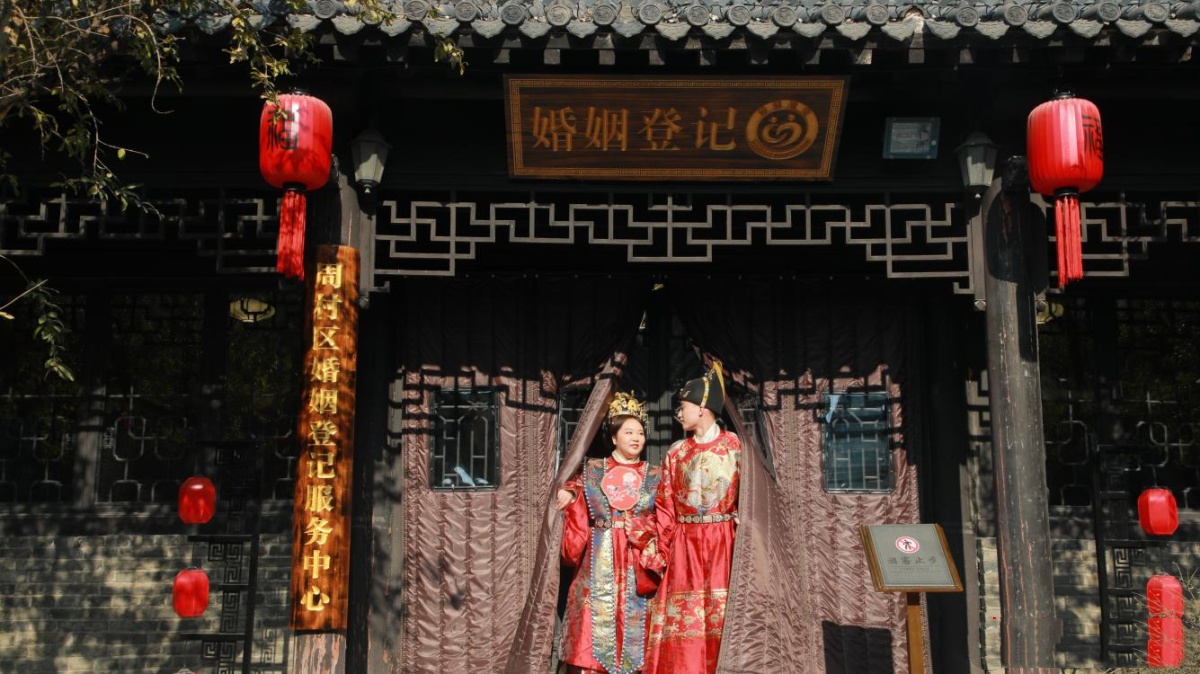 今年五一期间,在5a级景区周村古商城内,一座古色古香的婚姻登记服务中心成为新晋“网红打卡地”。