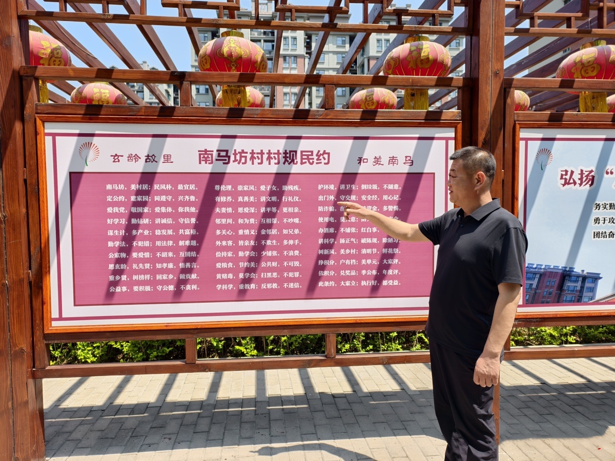 “我们前前后后改了5稿,就是想把移风易俗、环境整治这些事儿,变成大伙都能听懂的话。”南马坊村党支部书记、村委会主任徐立亚指着长廊墙上的图文介绍道,村里精心打造文化长廊,以图文并茂的形式立体展现村规民约内容。