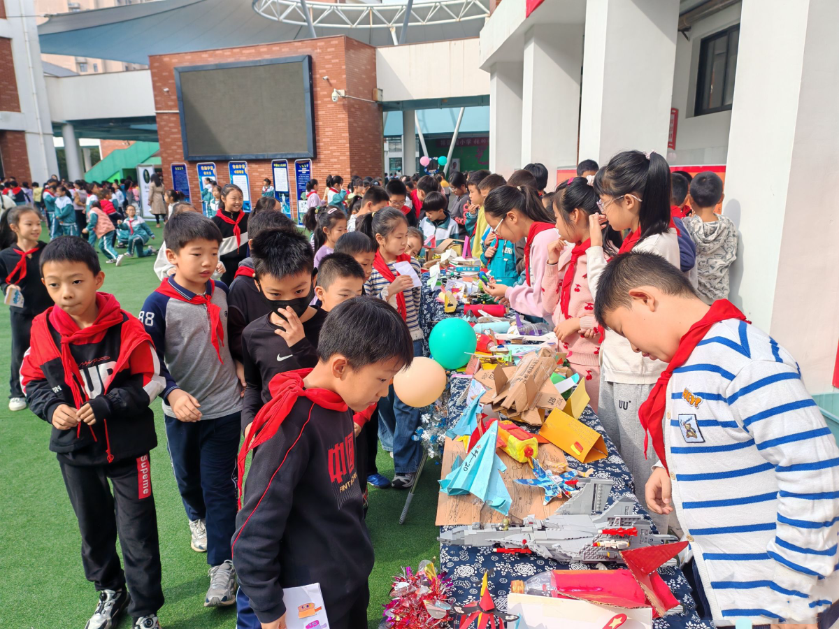 pvc管拼接的神舟飞船、筷子牙签搭建的高塔模型、乐高积木组装的远洋战舰……每个同学都在热情地向参观人群介绍着自己的作品,脸上洋溢着自信的笑容。