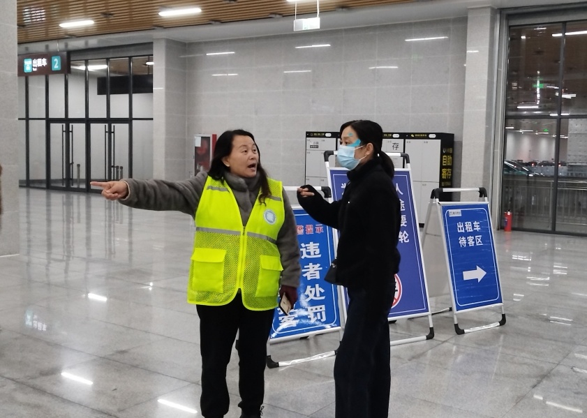 11月30日,张店区城市管理志愿者在淄博火车站为旅客提供志愿服务