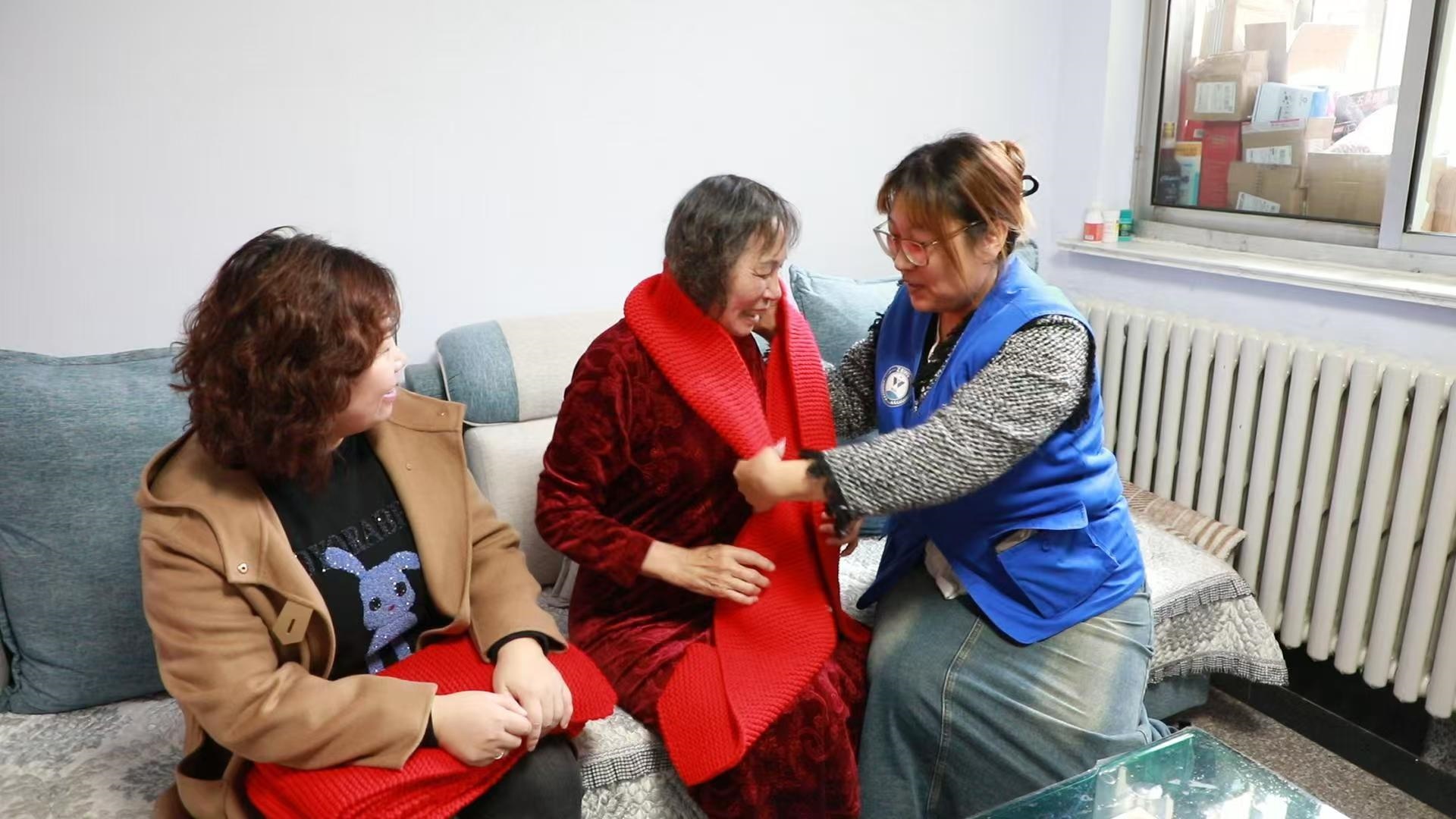 11月12日,张店区体育场街道柳毅社区组织志愿者编织围巾,送给社区独居老人、老党员、新业态新就业群体和困难家庭儿童。(资料图)