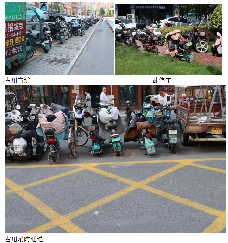 记者:今天在实地采访过程中发现非机动车占用盲道消防通道停放不规范等问题,您作为负责人将如何解决这些问题?