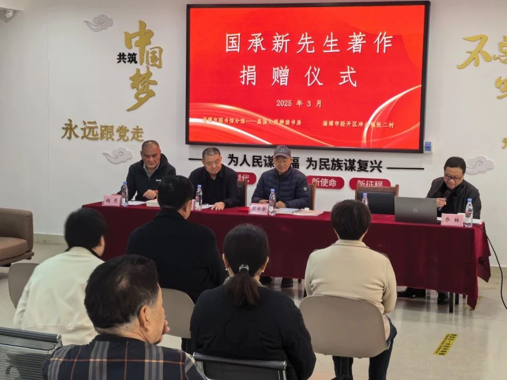 3月26日上午,沣水镇“昌国文苑”耕读书房迎来了一场充满书香与温情的活动。原淄博市侨务办公室副主任,诗人、作家国承新带着满满诚意,慷慨捐赠书籍,并亲笔写下美好寄语。
